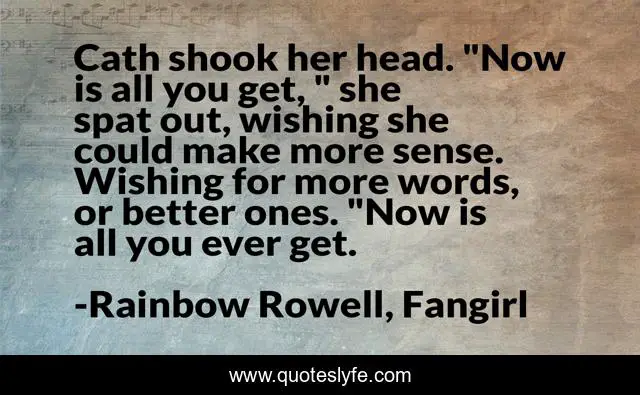 "Rainbow Rowell, Fangirl Quotes." Quoteslyfe.com, 2025. Tue. 09 Dec. 2025. <https://www.quoteslyfe.com/quote/Cath-shook-her-head-Now-is-all-221290>.