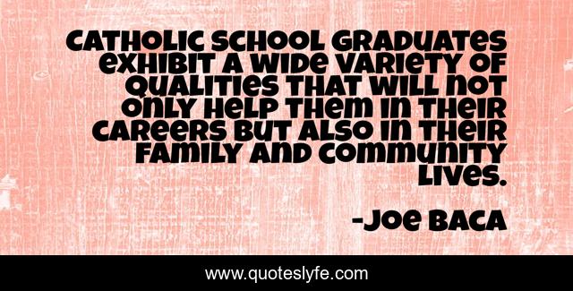 This page presents the quote "Catholic school graduates exhibit a wide variety of qualities that will not only help them in their careers but also in their family and community lives.". Author of this quote is Joe Baca. This quote is about school, family, community,.