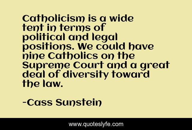 This page presents the quote "Catholicism is a wide tent in terms of political and legal positions. We could have nine Catholics on the Supreme Court and a great deal of diversity toward the law.". Author of this quote is Cass Sunstein. This quote is about great, law, diversity,.