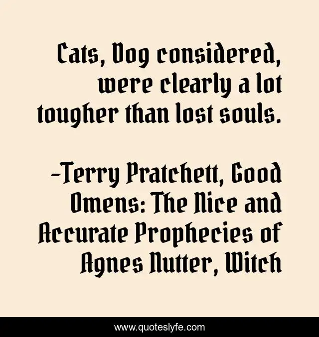 "Terry Pratchett, Good Omens: The Nice and Accurate Prophecies of Agnes Nutter, Witch Quotes." Quoteslyfe.com, 2025. Fri. 05 Dec. 2025. <https://www.quoteslyfe.com/quote/Cats-Dog-considered-were-clearly-a-lot-222620>.