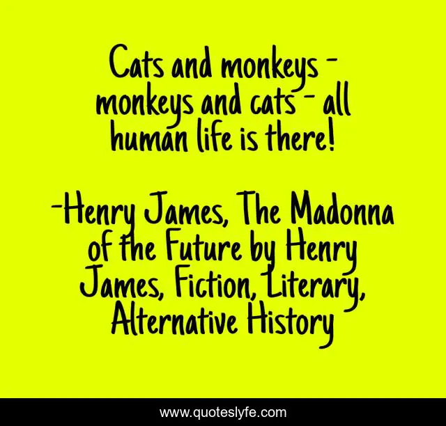 "Henry James, The Madonna of the Future by Henry James, Fiction, Literary, Alternative History Quotes." Quoteslyfe.com, 2025. Sat. 06 Dec. 2025. <https://www.quoteslyfe.com/quote/Cats-and-monkeys-monkeys-and-cats-all-164774>.