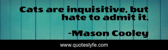 This page presents the quote "Cats are inquisitive, but hate to admit it.". Author of this quote is Mason Cooley. This quote is about admit, cats, hate,.