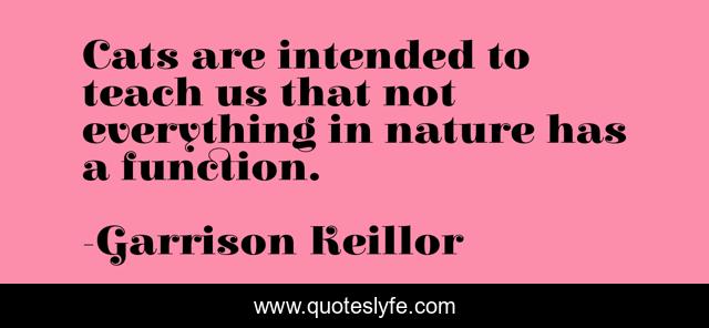This page presents the quote "Cats are intended to teach us that not everything in nature has a function.". Author of this quote is Garrison Keillor. This quote is about pet, teach, cats,.
