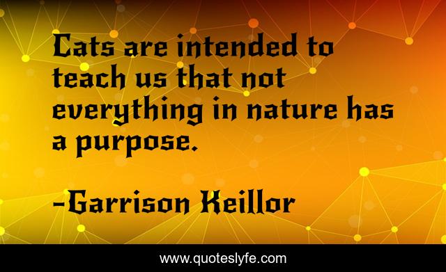 This page presents the quote "Cats are intended to teach us that not everything in nature has a purpose.". Author of this quote is Garrison Keillor. This quote is about cats, humor, absurd,.