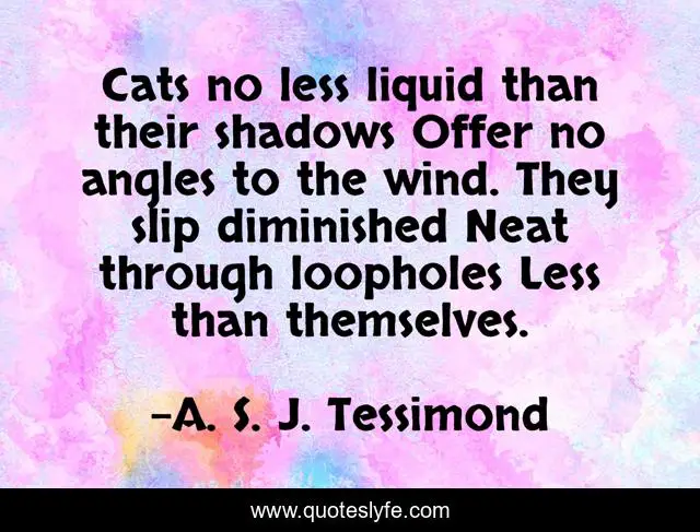 "A. S. J. Tessimond Quotes." Quoteslyfe.com, 2025. Fri. 05 Dec. 2025. <https://www.quoteslyfe.com/quote/Cats-no-less-liquid-than-their-shadows-260171>.