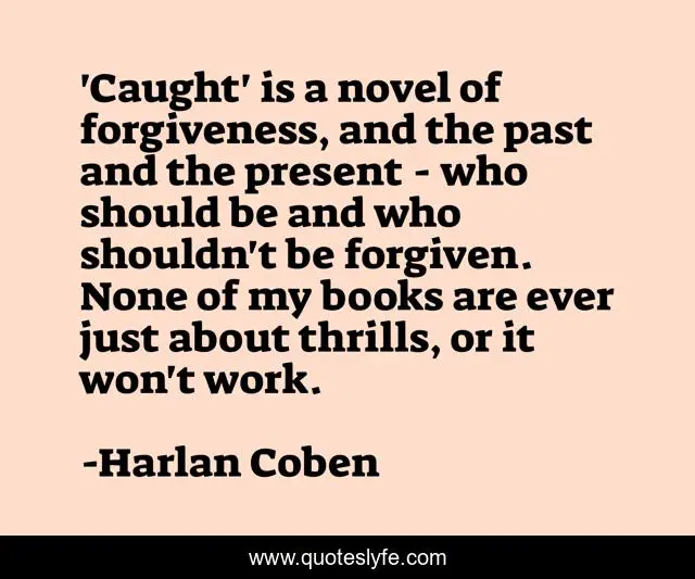 This page presents the quote "'Caught' is a novel of forgiveness, and the past and the present - who should be and who shouldn't be forgiven. None of my books are ever just about thrills, or it won't work.". Author of this quote is Harlan Coben. This quote is about past, work, present,.