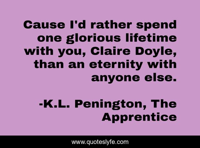 This page presents the quote "Cause I'd rather spend one glorious lifetime with you, Claire Doyle, than an eternity with anyone else.". Author of this quote is K.L. Penington, The Apprentice. This quote is about thelostrealmseries, urban-fantasy, yafiction,.