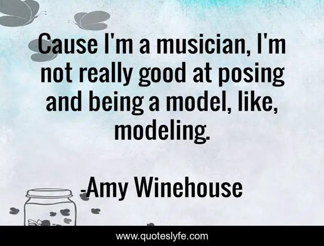 This page presents the quote "Cause I'm a musician, I'm not really good at posing and being a model, like, modeling.". Author of this quote is Amy Winehouse. This quote is about modeling, posing, like,.