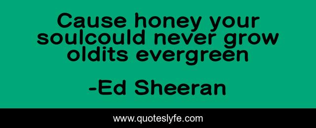 This page presents the quote "Cause honey your soulcould never grow oldits evergreen". Author of this quote is Ed Sheeran. This quote is about cute, love, affection,.