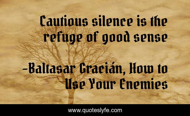 "Baltasar Gracián, How to Use Your Enemies Quotes." Quoteslyfe.com, 2025. Mon. 08 Dec. 2025. <https://www.quoteslyfe.com/quote/Cautious-silence-is-the-refuge-of-good-147073>.