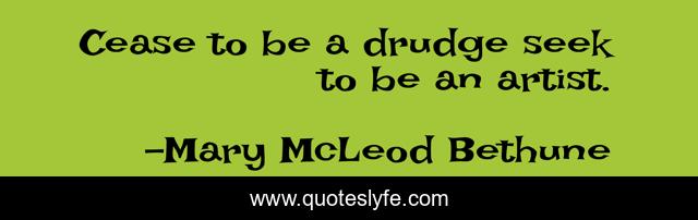 This page presents the quote "Cease to be a drudge seek to be an artist.". Author of this quote is Mary McLeod Bethune. This quote is about positive, confidence,.