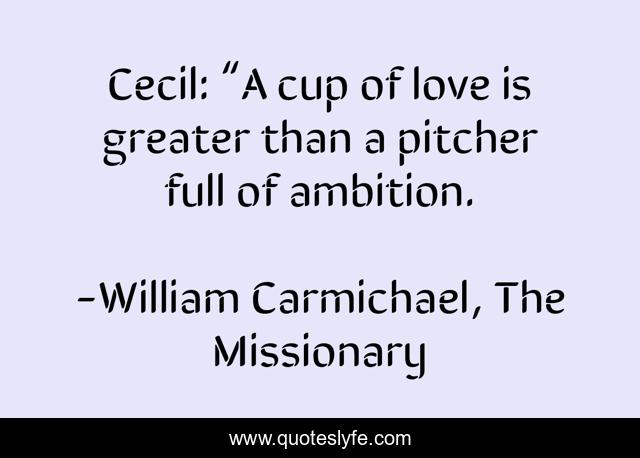 This page presents the quote "Cecil: “A cup of love is greater than a pitcher full of ambition.". Author of this quote is William Carmichael, The Missionary. This quote is about love, affection, ambition,.