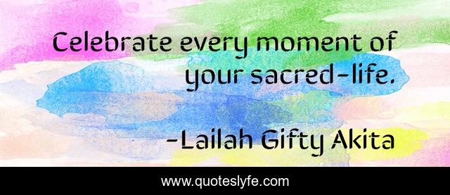 "Lailah Gifty Akita Quotes." Quoteslyfe.com, 2025. Sat. 06 Dec. 2025. <https://www.quoteslyfe.com/quote/Celebrate-every-moment-of-your-sacred-life-147655>.
