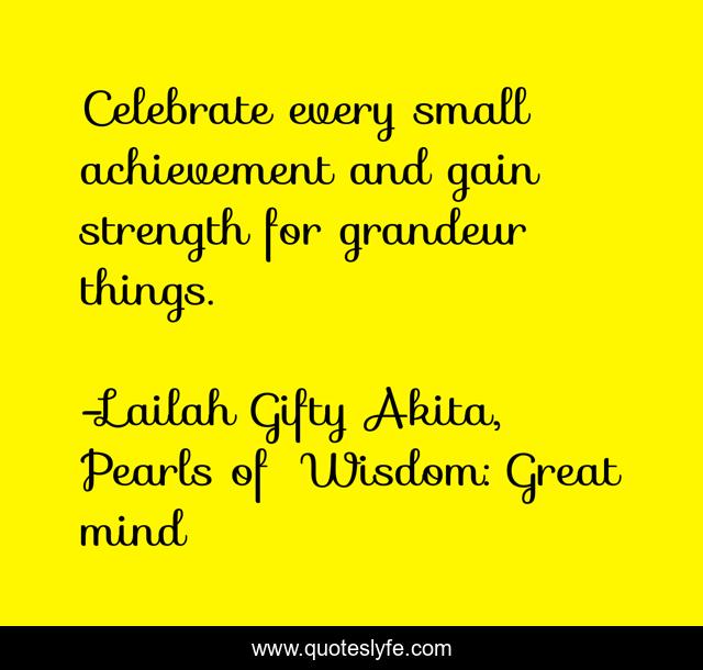 "Lailah Gifty Akita, Pearls of Wisdom: Great mind Quotes." Quoteslyfe.com, 2025. Mon. 08 Dec. 2025. <https://www.quoteslyfe.com/quote/Celebrate-every-small-achievement-and-gain-strength-34370>.
