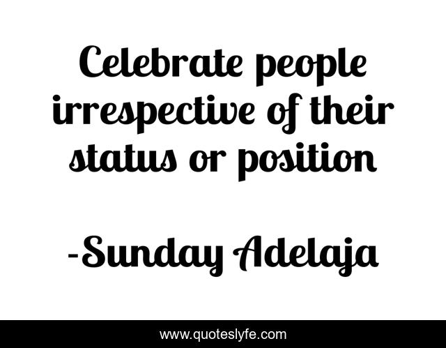 "Sunday Adelaja Quotes." Quoteslyfe.com, 2025. Tue. 09 Dec. 2025. <https://www.quoteslyfe.com/quote/Celebrate-people-irrespective-of-their-status-or-39697>.