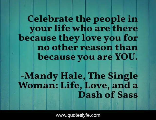 "Mandy Hale, The Single Woman: Life, Love, and a Dash of Sass Quotes." Quoteslyfe.com, 2025. Mon. 08 Dec. 2025. <https://www.quoteslyfe.com/quote/Celebrate-the-people-in-your-life-who-50208>.