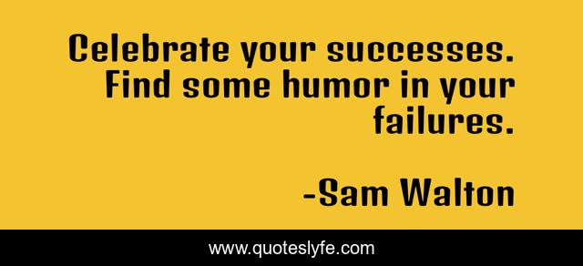 This page presents the quote "Celebrate your successes. Find some humor in your failures.". Author of this quote is Sam Walton. This quote is about successes, find, celebrate,.