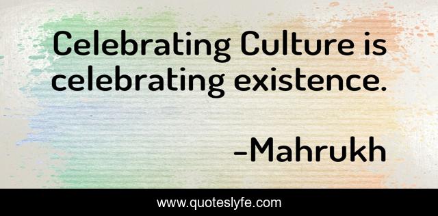 This page presents the quote "Celebrating Culture is celebrating existence.". Author of this quote is Mahrukh. This quote is about culture, existancee,.