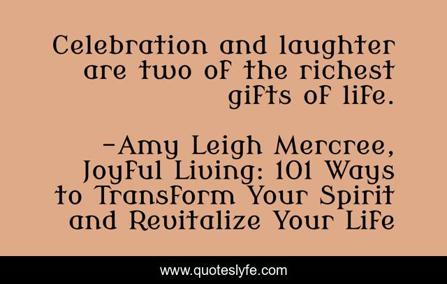 "Amy Leigh Mercree, Joyful Living: 101 Ways to Transform Your Spirit and Revitalize Your Life Quotes." Quoteslyfe.com, 2025. Sun. 07 Dec. 2025. <https://www.quoteslyfe.com/quote/Celebration-and-laughter-are-two-of-the-15081>.