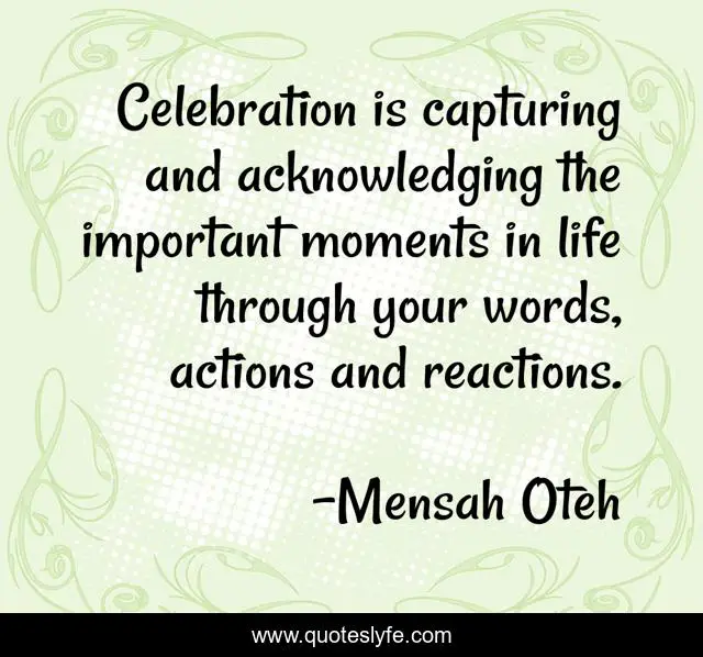 "Mensah Oteh Quotes." Quoteslyfe.com, 2025. Fri. 05 Dec. 2025. <https://www.quoteslyfe.com/quote/Celebration-is-capturing-and-acknowledging-the-important-49171>.