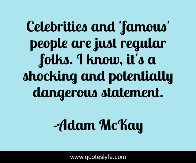 This page presents the quote "Celebrities and 'famous' people are just regular folks. I know, it's a shocking and potentially dangerous statement.". Author of this quote is Adam McKay. This quote is about famous people, people,.