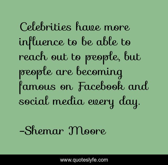 This page presents the quote "Celebrities have more influence to be able to reach out to people, but people are becoming famous on Facebook and social media every day.". Author of this quote is Shemar Moore. This quote is about social media, influence, day,.