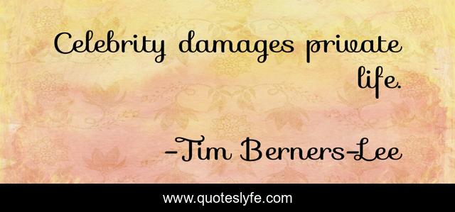 This page presents the quote "Celebrity damages private life.". Author of this quote is Tim Berners-Lee. This quote is about life, celebrity,.