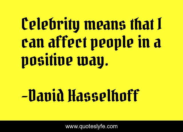 This page presents the quote "Celebrity means that I can affect people in a positive way.". Author of this quote is David Hasselhoff. This quote is about positive, celebrity, confidence, people,.