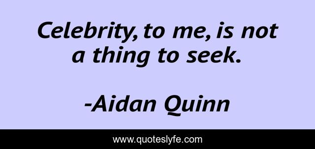 This page presents the quote "Celebrity, to me, is not a thing to seek.". Author of this quote is Aidan Quinn. This quote is about me, celebrity, seek,.