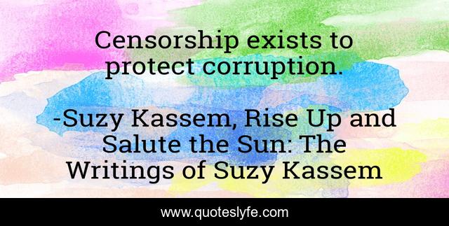 "Suzy Kassem, Rise Up and Salute the Sun: The Writings of Suzy Kassem Quotes." Quoteslyfe.com, 2025. Sat. 06 Dec. 2025. <https://www.quoteslyfe.com/quote/Censorship-exists-to-protect-corruption-174110>.