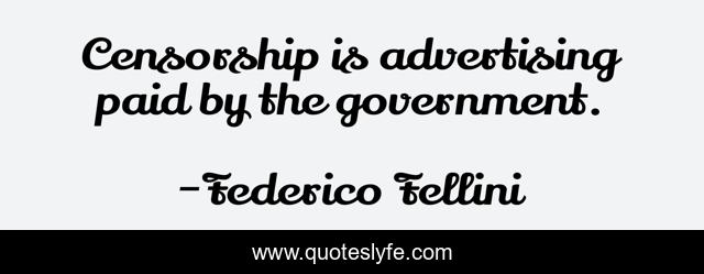This page presents the quote "Censorship is advertising paid by the government.". Author of this quote is Federico Fellini. This quote is about advertising, censorship,.