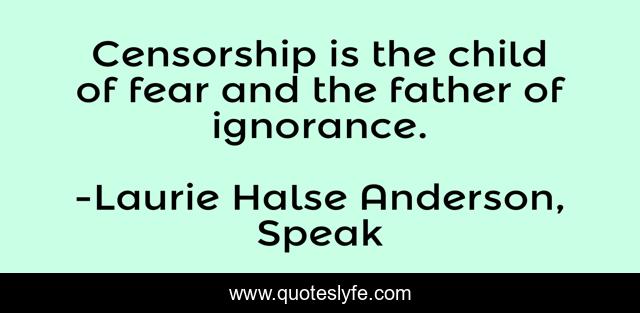 "Laurie Halse Anderson, Speak Quotes." Quoteslyfe.com, 2025. Sun. 07 Dec. 2025. <https://www.quoteslyfe.com/quote/Censorship-is-the-child-of-fear-and-42878>.