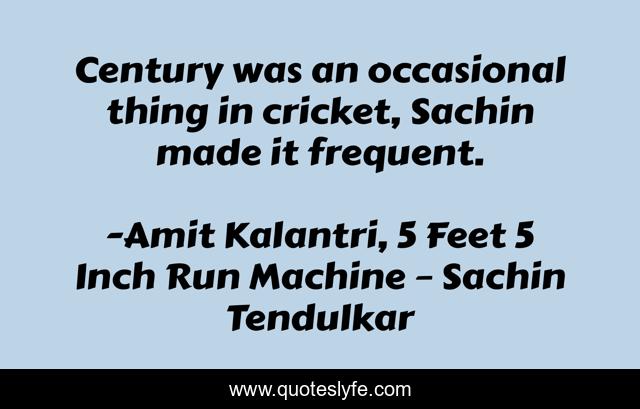 "Amit Kalantri, 5 Feet 5 Inch Run Machine – Sachin Tendulkar Quotes." Quoteslyfe.com, 2025. Mon. 08 Dec. 2025. <https://www.quoteslyfe.com/quote/Century-was-an-occasional-thing-in-cricket-197716>.