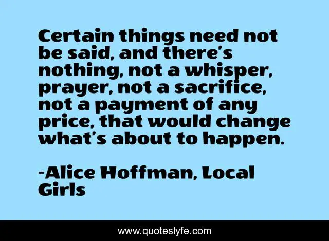"Alice Hoffman, Local Girls Quotes." Quoteslyfe.com, 2025. Sat. 06 Dec. 2025. <https://www.quoteslyfe.com/quote/Certain-things-need-not-be-said-and-153616>.