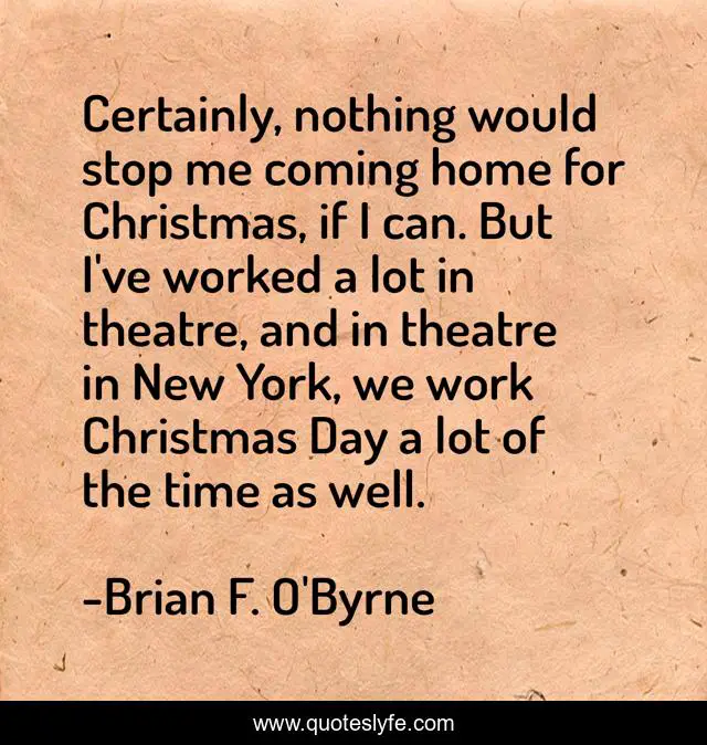 This page presents the quote "Certainly, nothing would stop me coming home for Christmas, if I can. But I've worked a lot in theatre, and in theatre in New York, we work Christmas Day a lot of the time as well.". Author of this quote is Brian F. O'Byrne. This quote is about home, work, time,.