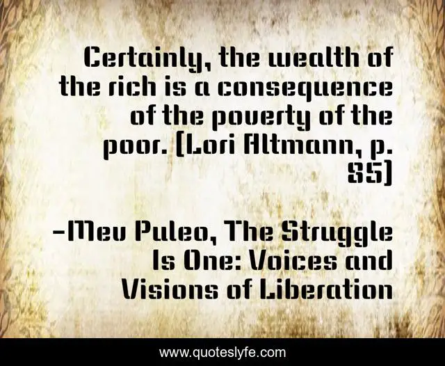"Mev Puleo, The Struggle Is One: Voices and Visions of Liberation Quotes." Quoteslyfe.com, 2025. Sat. 06 Dec. 2025. <https://www.quoteslyfe.com/quote/Certainly-the-wealth-of-the-rich-is-138332>.