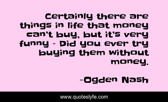 This page presents the quote "Certainly there are things in life that money can’t buy, but it’s very funny – Did you ever try buying them without money.". Author of this quote is Ogden Nash. This quote is about humorous, humor-inspirational,.