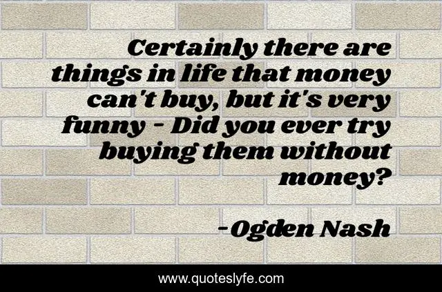 This page presents the quote "Certainly there are things in life that money can't buy, but it's very funny - Did you ever try buying them without money?". Author of this quote is Ogden Nash. This quote is about money, life,.