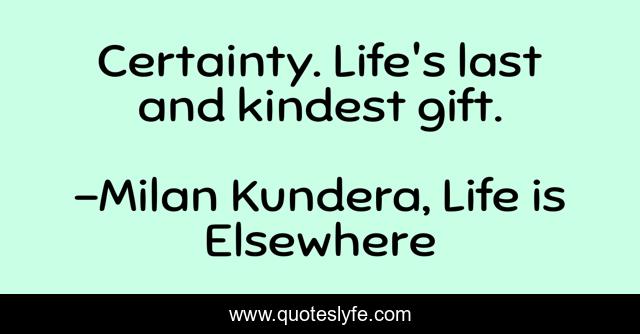 "Milan Kundera, Life is Elsewhere Quotes." Quoteslyfe.com, 2025. Mon. 08 Dec. 2025. <https://www.quoteslyfe.com/quote/Certainty-Life-s-last-and-kindest-gift-199014>.