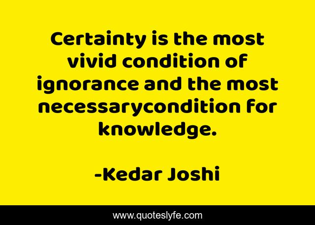 This page presents the quote "Certainty is the most vivid condition of ignorance and the most necessarycondition for knowledge.". Author of this quote is Kedar Joshi. This quote is about epistemology, certainty, ignorance, knowledge,.