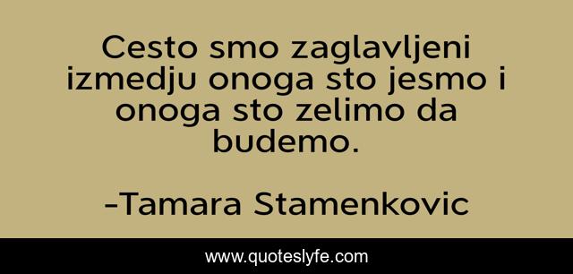 "Tamara Stamenkovic Quotes." Quoteslyfe.com, 2025. Fri. 05 Dec. 2025. <https://www.quoteslyfe.com/quote/Cesto-smo-zaglavljeni-izmedju-onoga-sto-jesmo-20581>.