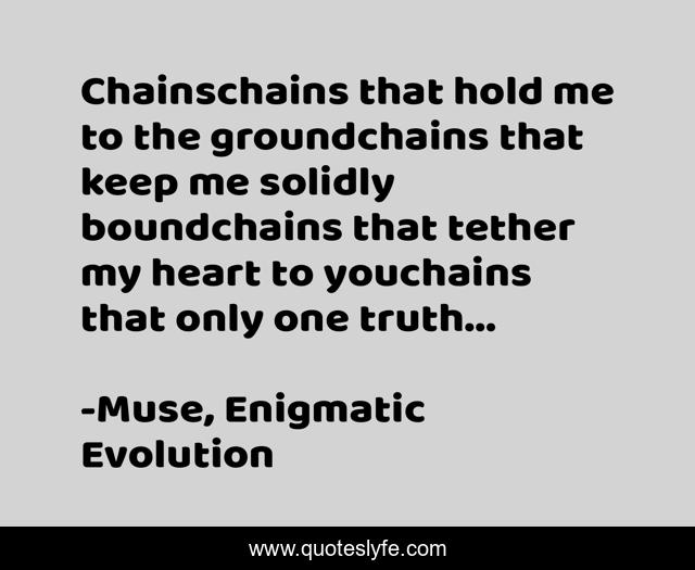 "Muse, Enigmatic Evolution Quotes." Quoteslyfe.com, 2025. Fri. 05 Dec. 2025. <https://www.quoteslyfe.com/quote/Chainschains-that-hold-me-to-the-groundchains-10249>.