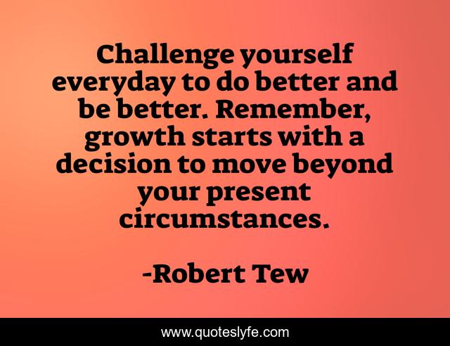 This page presents the quote "Challenge yourself everyday to do better and be better. Remember, growth starts with a decision to move beyond your present circumstances.". Author of this quote is Robert Tew. This quote is about challenge, improvement,.