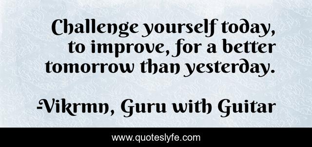 This page presents the quote "Challenge yourself today, to improve, for a better tomorrow than yesterday.". Author of this quote is Vikrmn, Guru with Guitar. This quote is about improve, gwg, vikram, positive, challenge, motivational, confidence, ca-vikram-verma, yourself,.