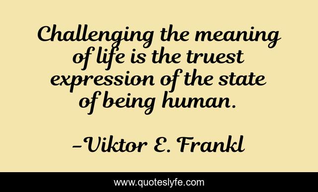 This page presents the quote "Challenging the meaning of life is the truest expression of the state of being human.". Author of this quote is Viktor E. Frankl. This quote is about meaning of life, life,.