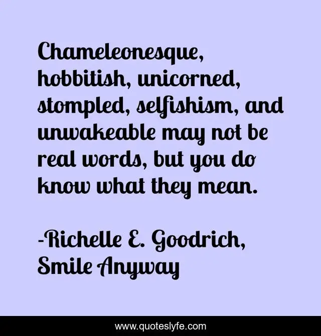 "Richelle E. Goodrich, Smile Anyway Quotes." Quoteslyfe.com, 2025. Fri. 05 Dec. 2025. <https://www.quoteslyfe.com/quote/Chameleonesque-hobbitish-unicorned-stompled-selfishism-and-unwakeable-113481>.