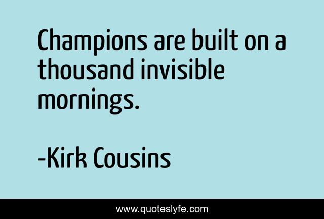 This page presents the quote "Champions are built on a thousand invisible mornings.". Author of this quote is Kirk Cousins. .
