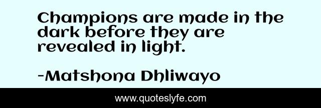 "Matshona Dhliwayo Quotes." Quoteslyfe.com, 2025. Sat. 06 Dec. 2025. <https://www.quoteslyfe.com/quote/Champions-are-made-in-the-dark-before-83546>.