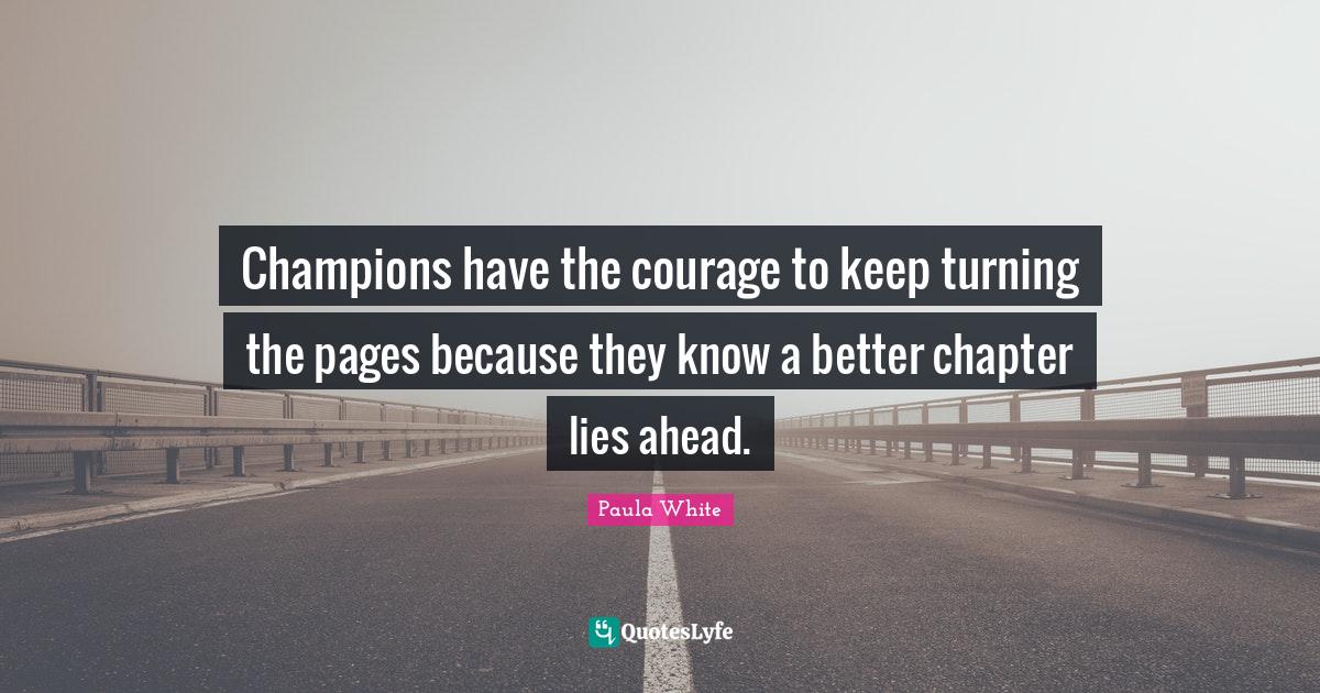 This page presents the quote "Champions have the courage to keep turning the pages because they know a better chapter lies ahead.". Author of this quote is Paula White. This quote is about enthusiasm, inspirational,.