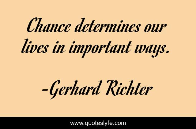 This page presents the quote "Chance determines our lives in important ways.". Author of this quote is Gerhard Richter. This quote is about ways, our lives, important,.